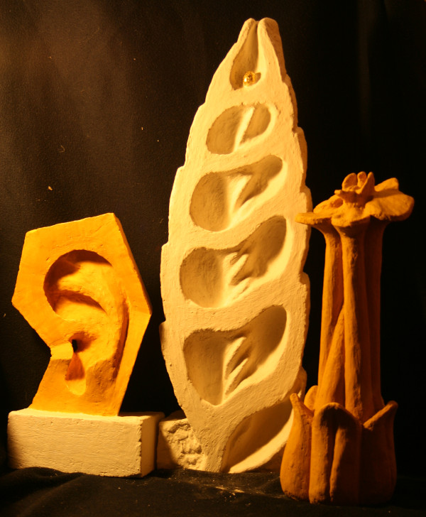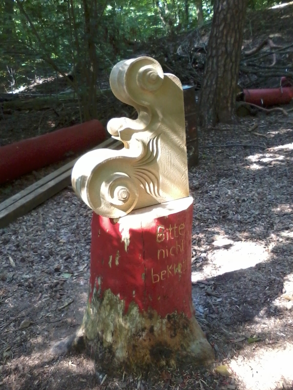 Einfindung ins Material Holz: Erste Skulpturen aus Holz sind entstanden.