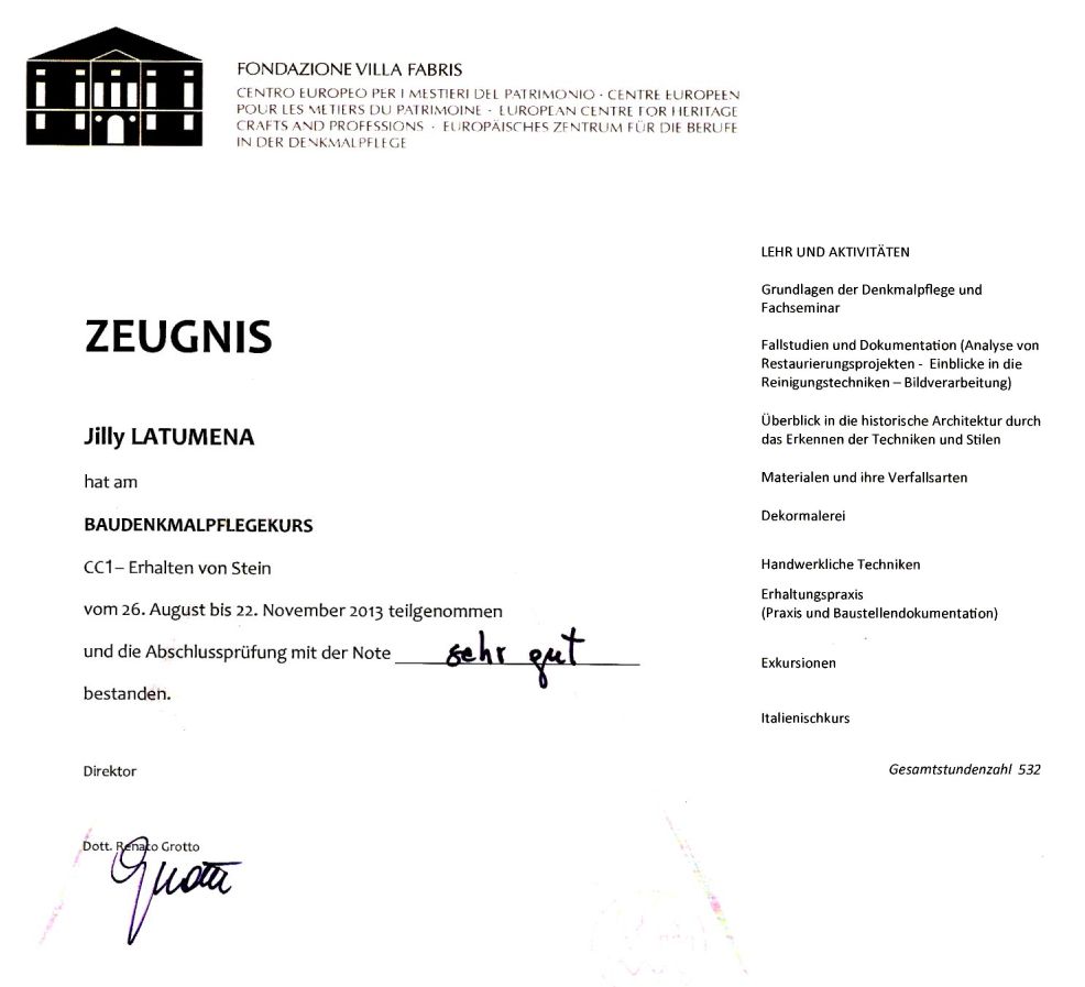 in der Denkmalpflege in Thiene - Veneto. Das Merkblatt ist hier